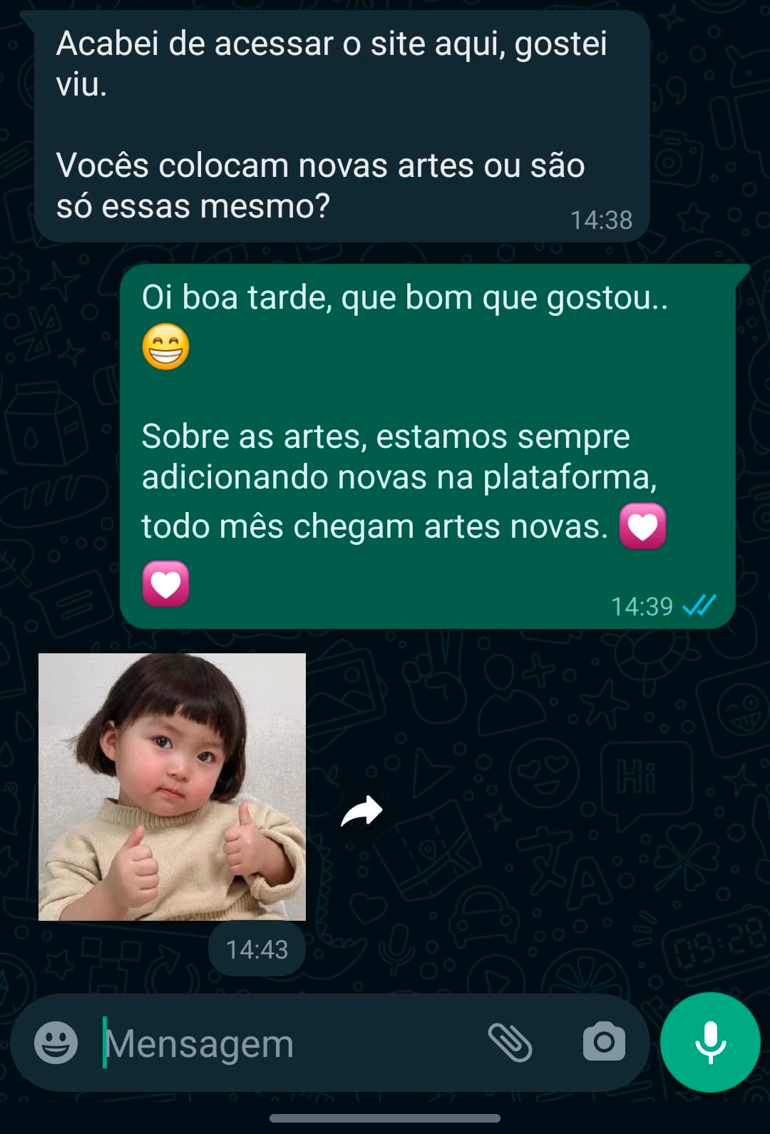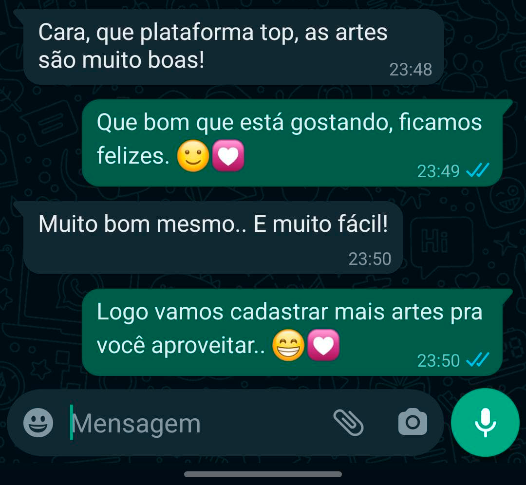 Suporte especializado via Whatsapp. Estamos sempre dispóstos a esclarecer suas dúvidas. Além disso você tem acesso ao grupo VIP apenas para membros.
